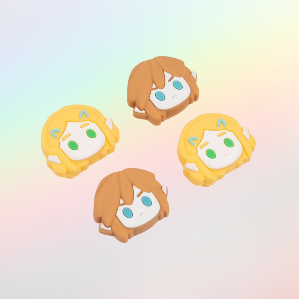 Par de grips decorativos y protectores para joysticks. Compatibles con Switch Lite, Switch OLED y Switch Standard (B1/B2). Protegen la goma de los joysticks de desgaste y decoran la consola.
